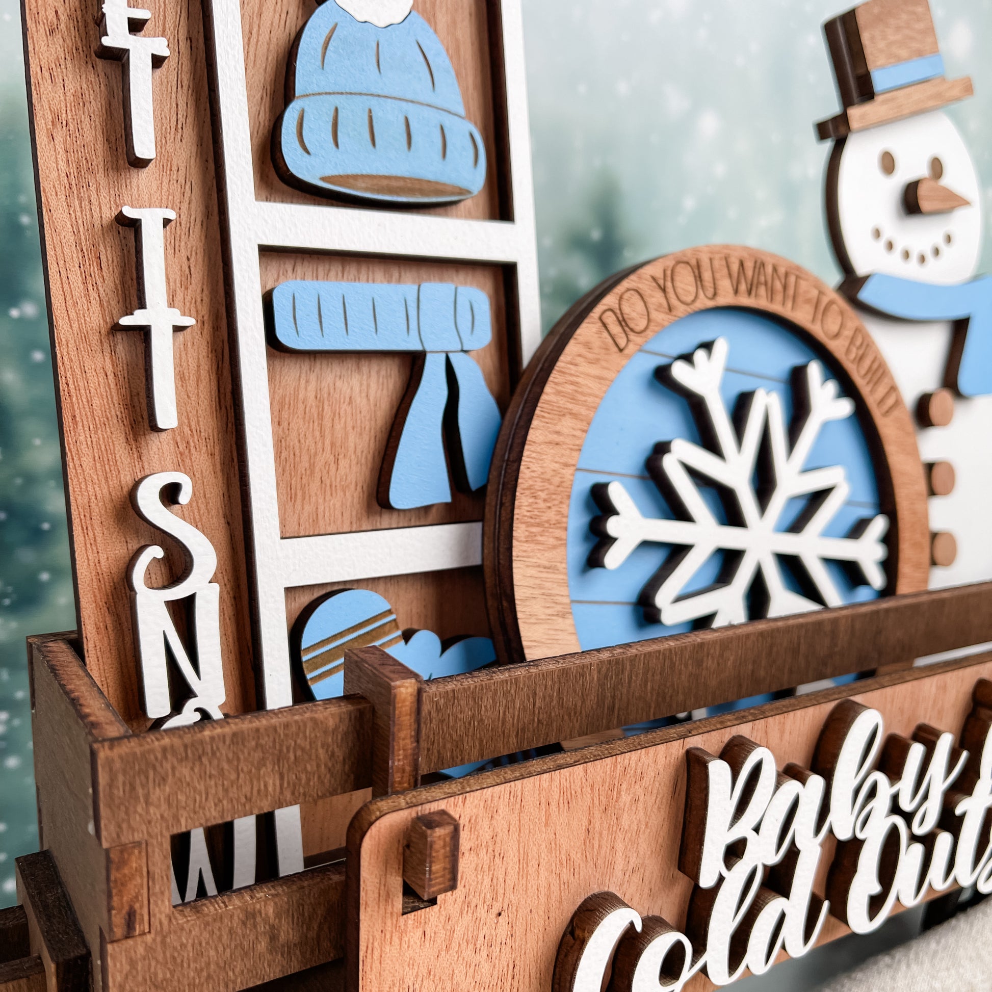 4. **Perfect Gift:** Looking for a thoughtful and unique gift for a friend or loved one? The "Baby, It's Cold Outside" decorative wooden wagon theme makes an excellent choice, whether for a housewarming, holiday, or special occasion.