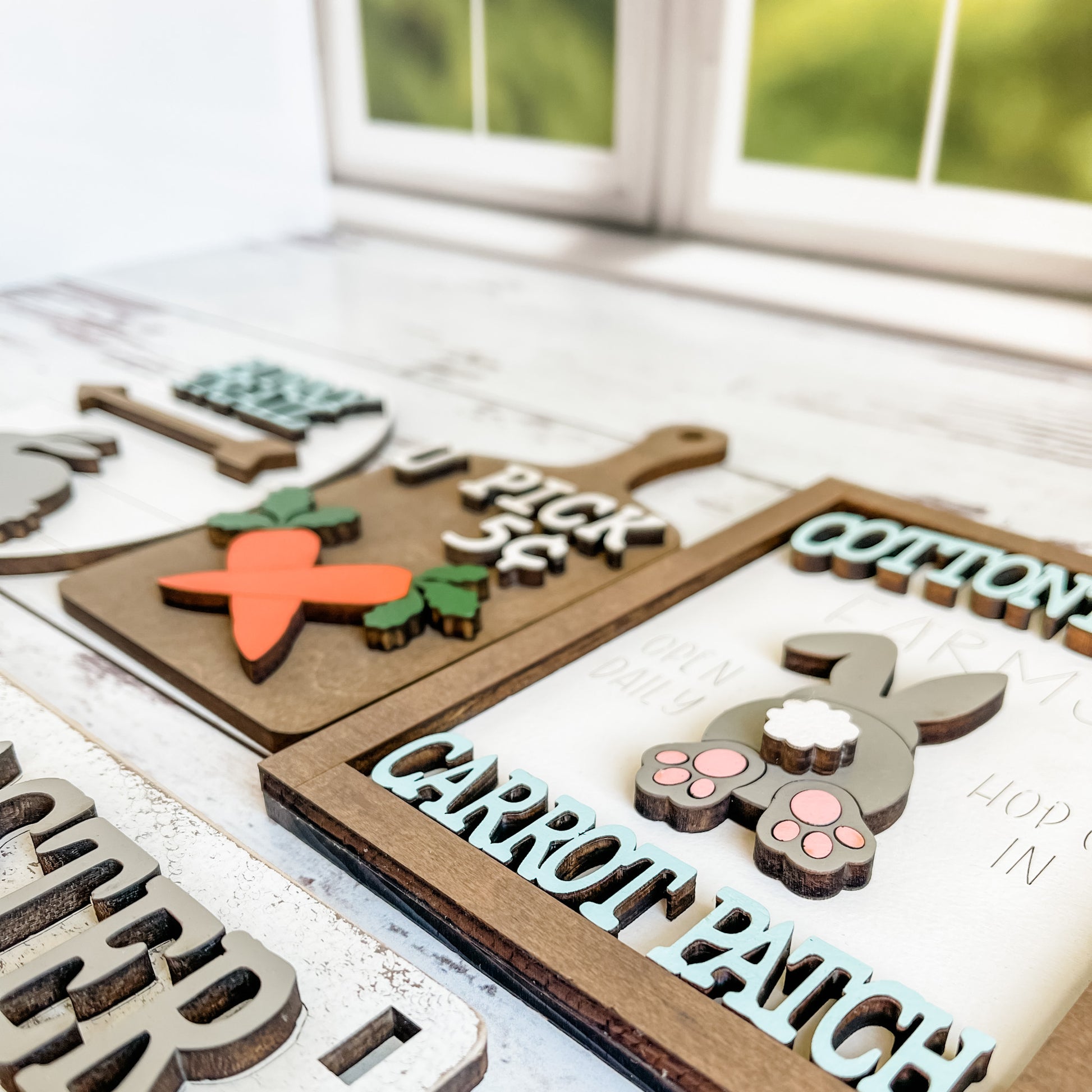 This adorable Easter Farm themed kit is perfect for decorating for Easter. Made to go with our Wagon Shelf Sitter. All pieces are hand painted, layered wood.