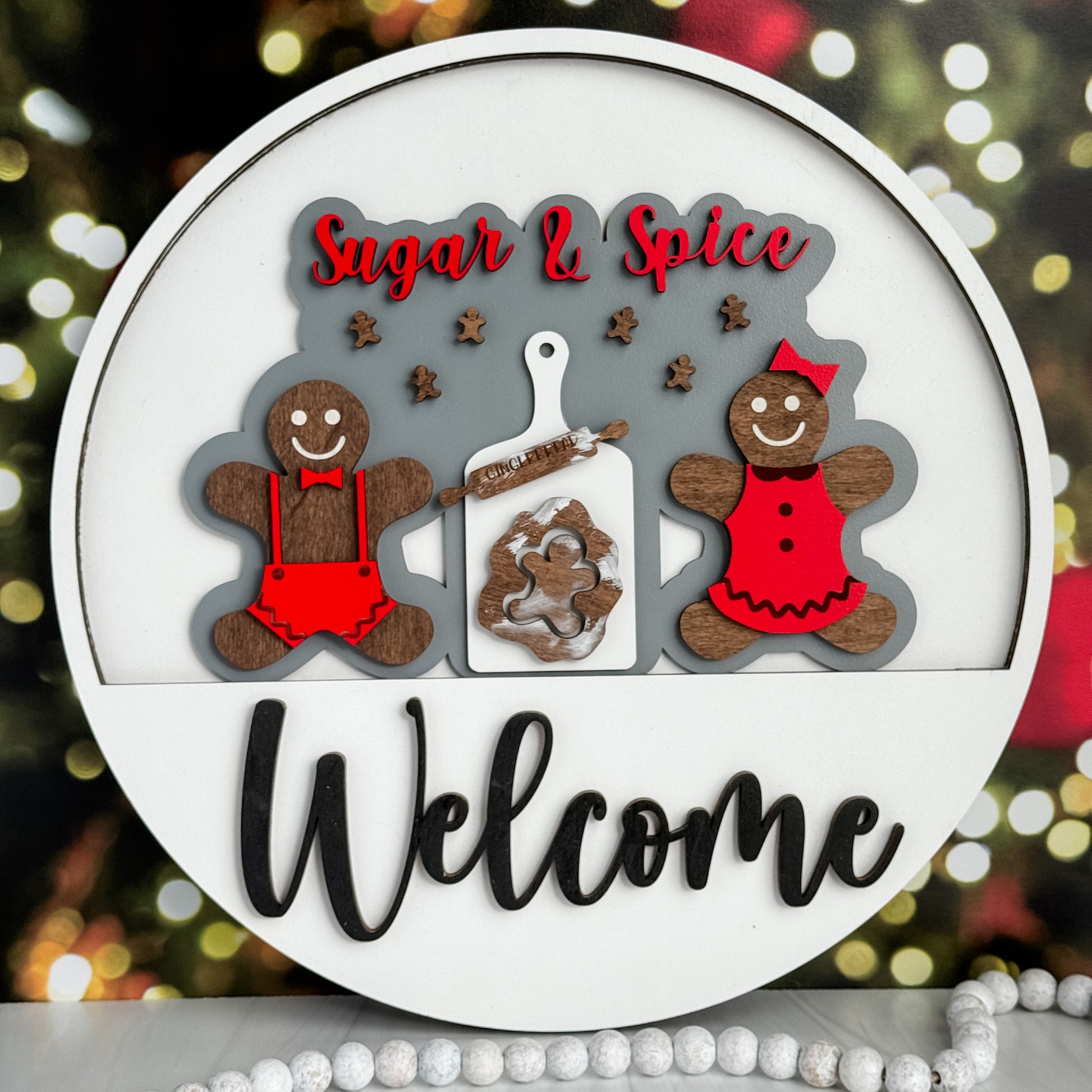 Simply slide this gingerbread theme into your interchangeable round wooden sign, and transform your space into a cozy, festive wonderland. Whether displayed in your kitchen, living room, or by the fireplace, this theme adds a sweet touch of holiday magic that's sure to delight family and friends alike.