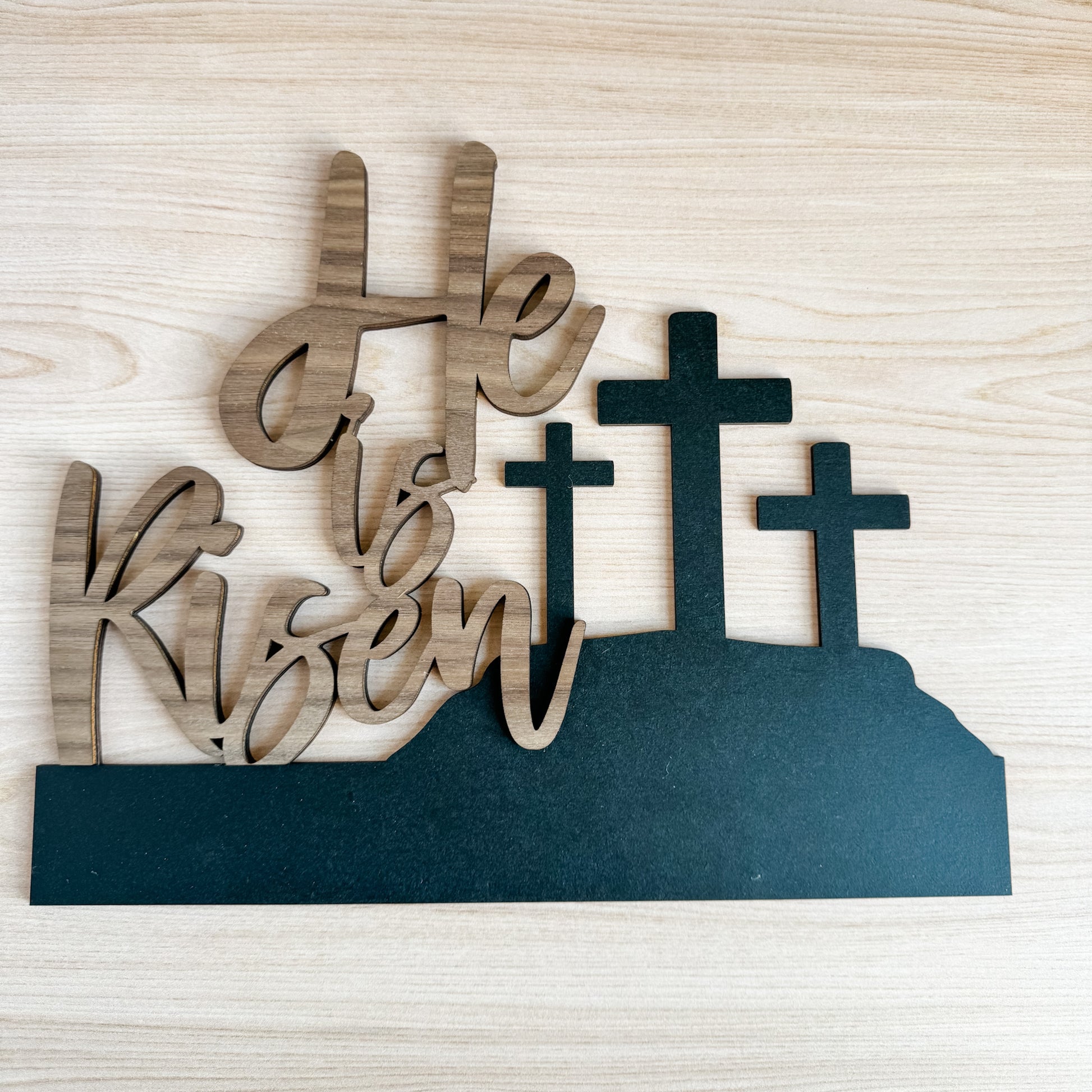Embrace the essence of faith and renewal with our exquisite **He Is Risen Add-On Theme for Interchangeable Round Wooden Signs**. Crafted with reverence and attention to detail, this theme beautifully captures the spirit of Easter and the profound message it carries.