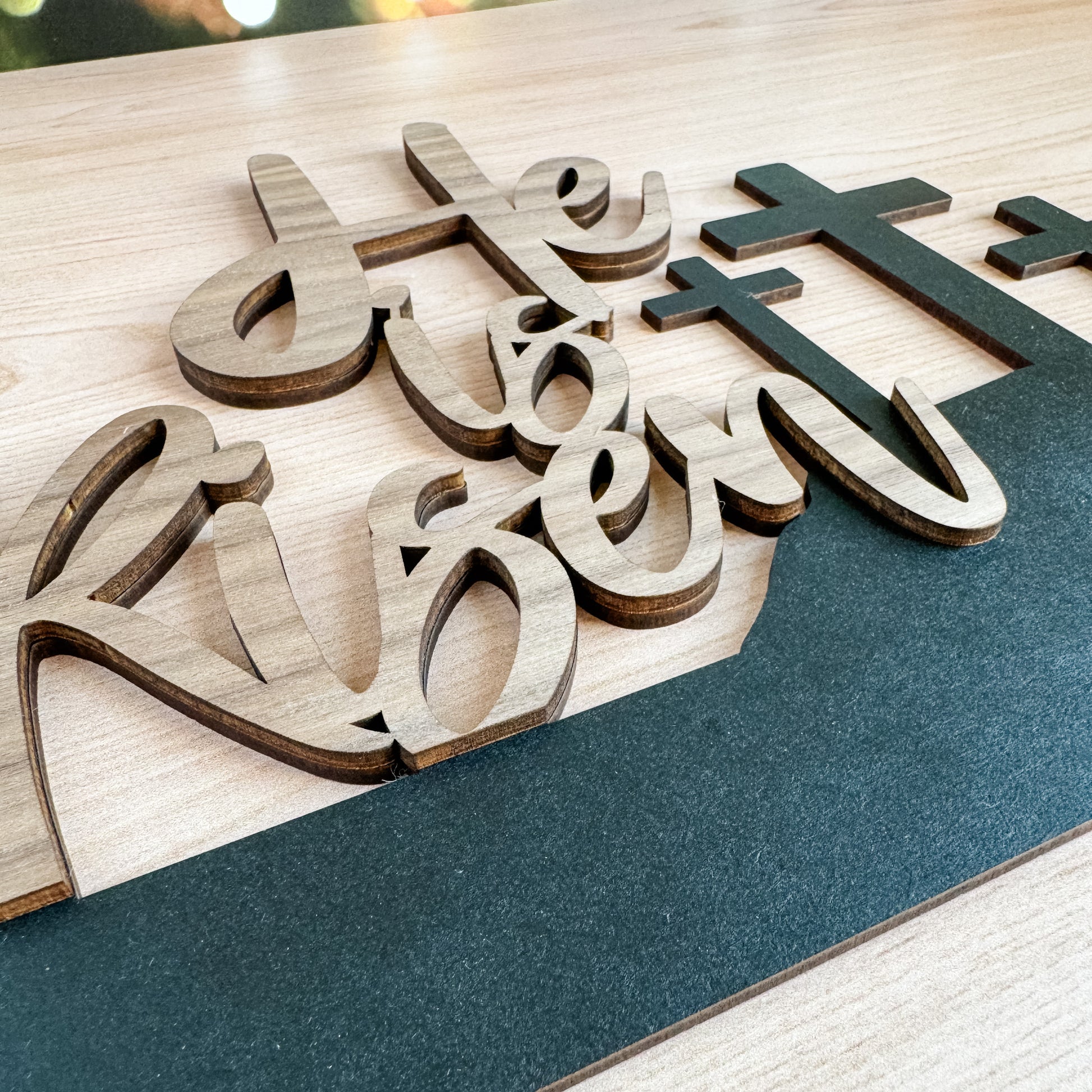 The interchangeable design not only ensures easy attachment to your wooden sign but also allows you to switch themes effortlessly, making it a versatile choice for various occasions and seasons. Whether displayed in your home, church, or community center, this He Is Risen theme will inspire and uplift all who see it.