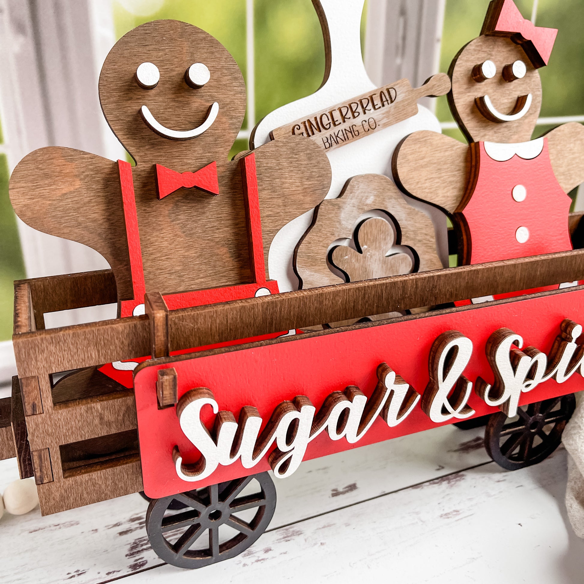 Gingerbread themed, beautiful 4 piece kit is made to go with our Wagon Shelf Sitter.