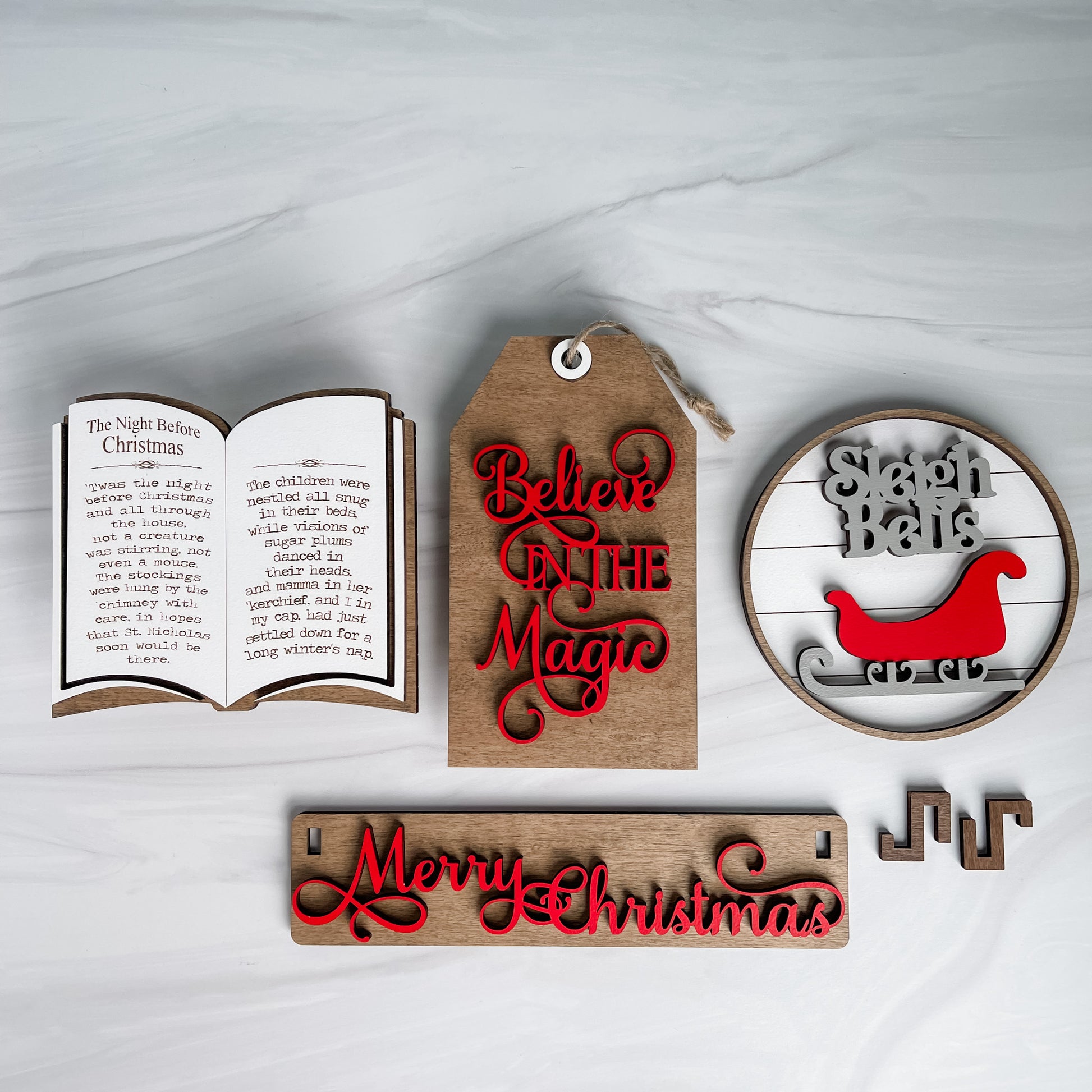 Vintage Christmas themed, beautiful 4 piece kit is made to go with our Wagon Shelf Sitter.