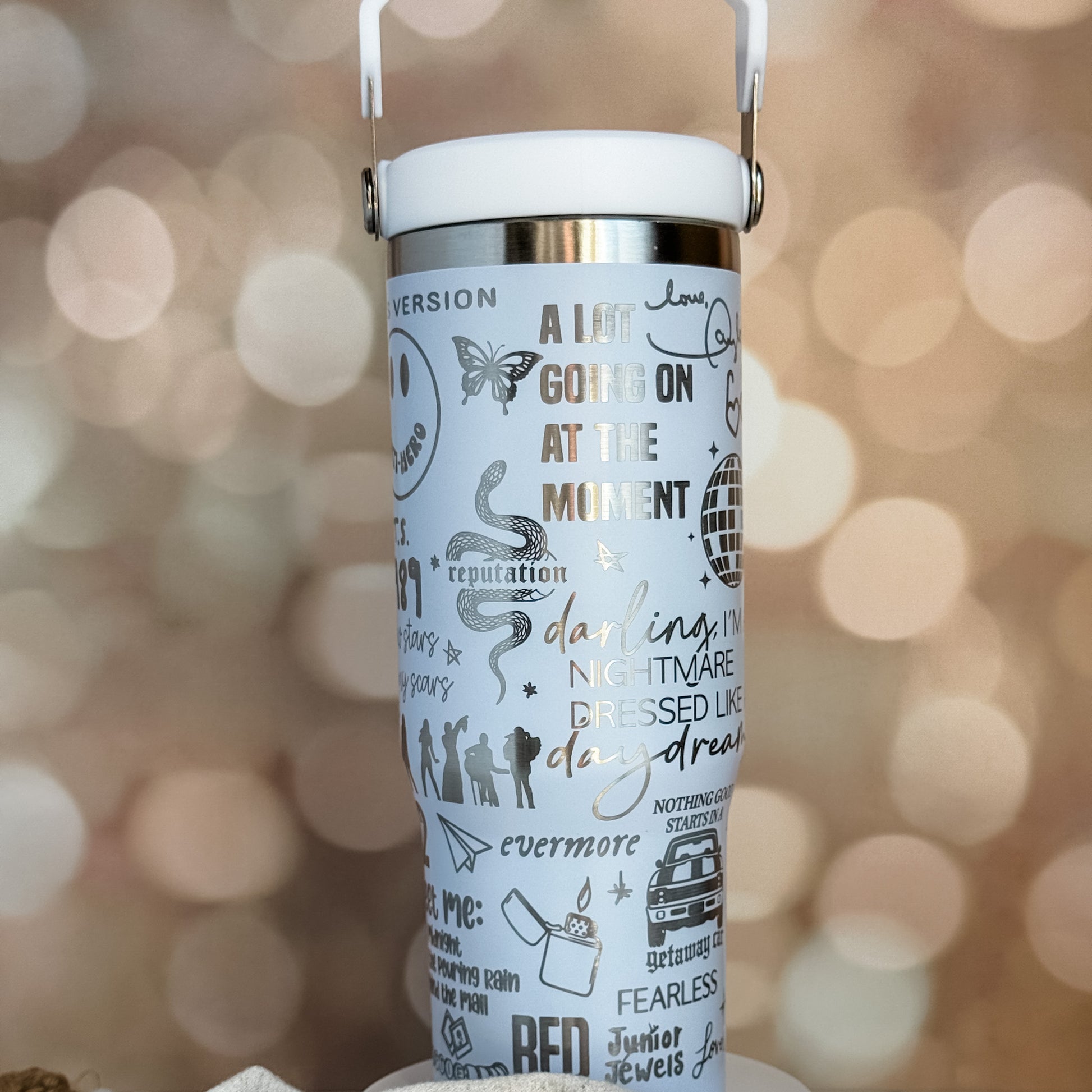 This Swiftie 30oz, full wrap water bottle is the perfect gift for that true fan in your life. Loaded with detail, this water bottle will be the envy of all your friends...